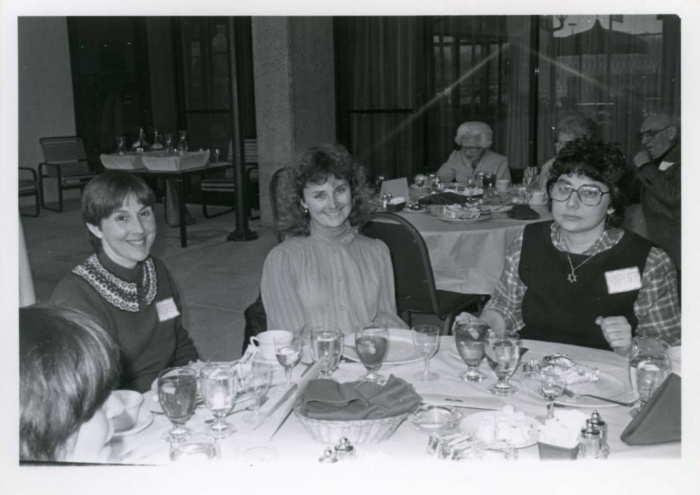 Front table, left to right: Andie McDuffie, Marcie Shloush, Mary Beth Leibowitz; back table: Clara Goodstein, Mary Corkland (partially hidden), Jake Corkland.