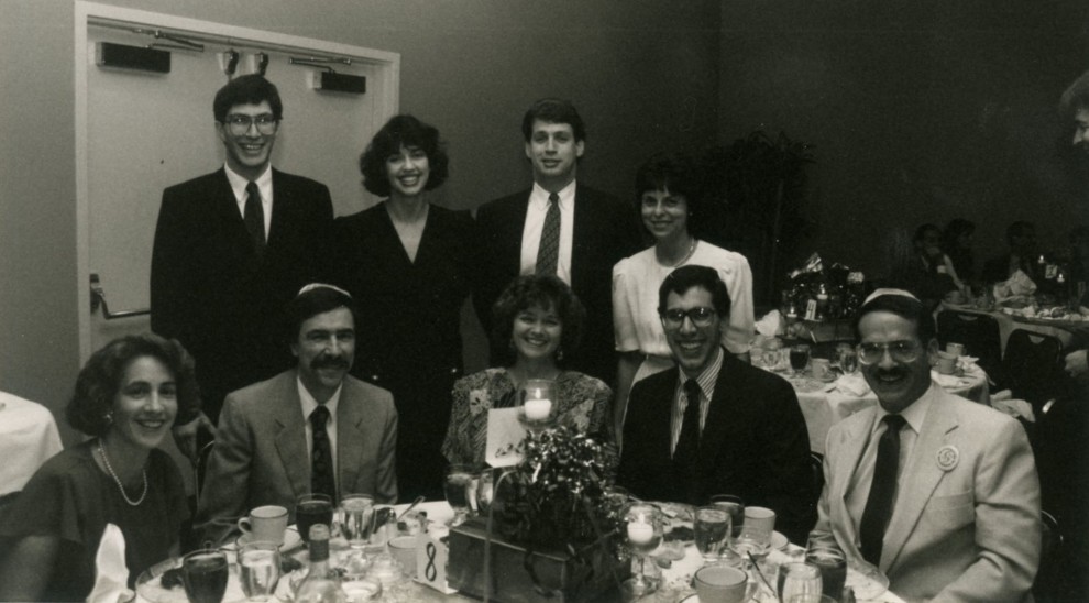 August 31-September 2, 1990, was Heska Amuna’s Centennial Weekend, capped by a dinner-dance at the Radisson. Standing, left to right, Rabbi Arthur Weiner, Shira Weiner, Scott Hahn, Sue Koller. Seated: Fran Redisch, Phil Redisch, Cece Friedman, Michael Friedman, Conrad Koller.