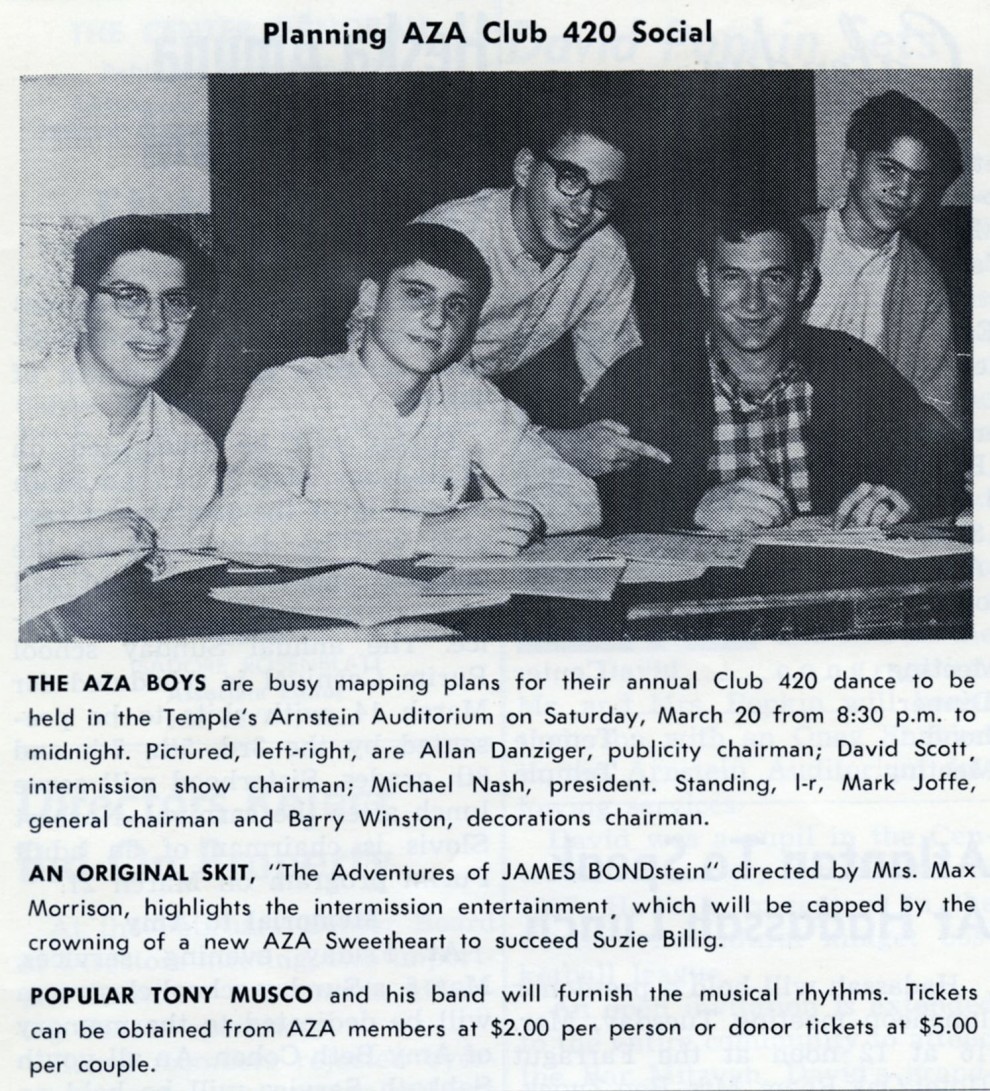 This photo appeared in the March, 1965, issue of The Center Menorah. As reported in the May Menorah, Anne Morrison was chosen as the new sweetheart.